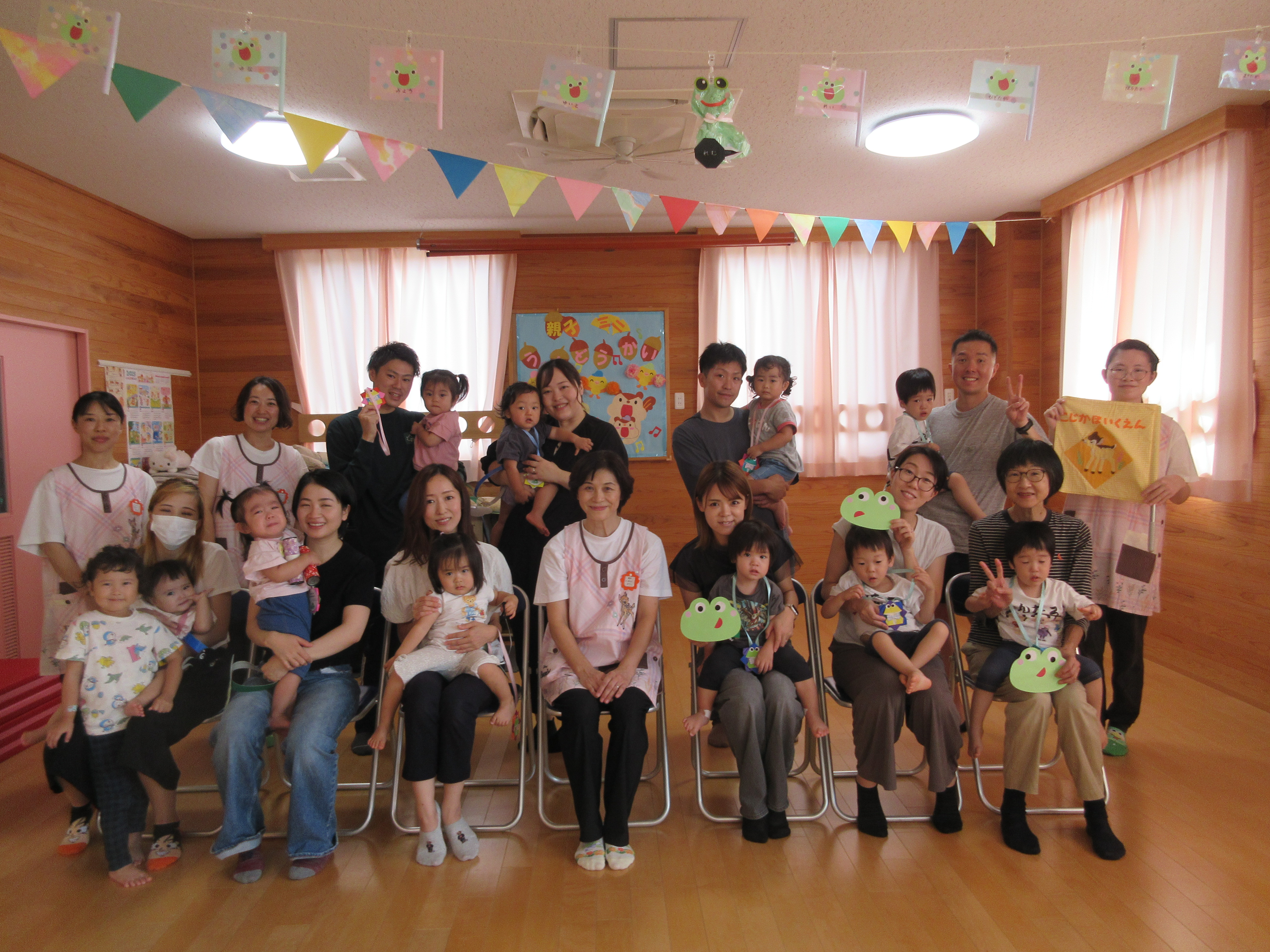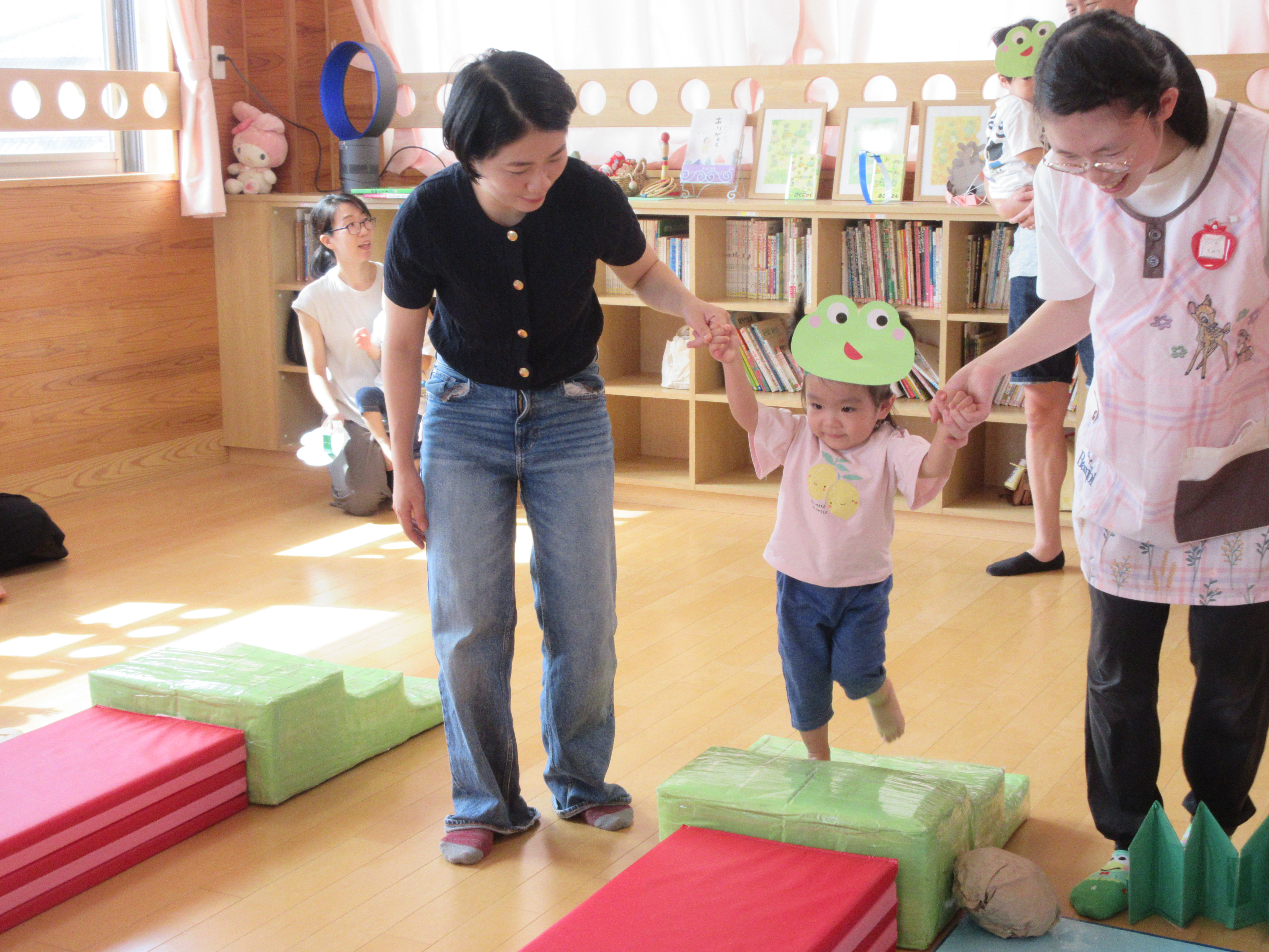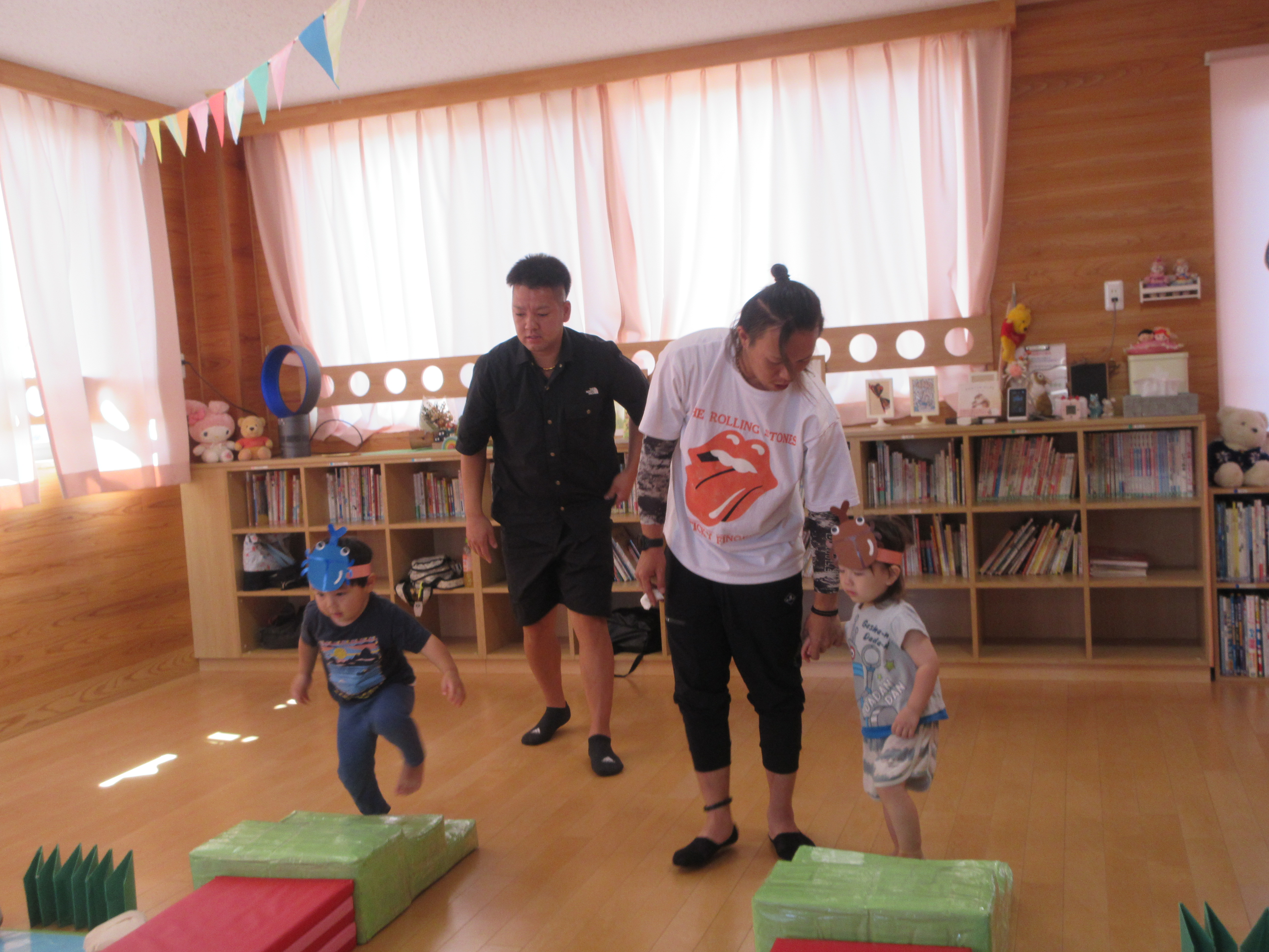 親子ふれあい運動会では、保育園で普段から親しんでいる歌や遊びを一緒に体験して
