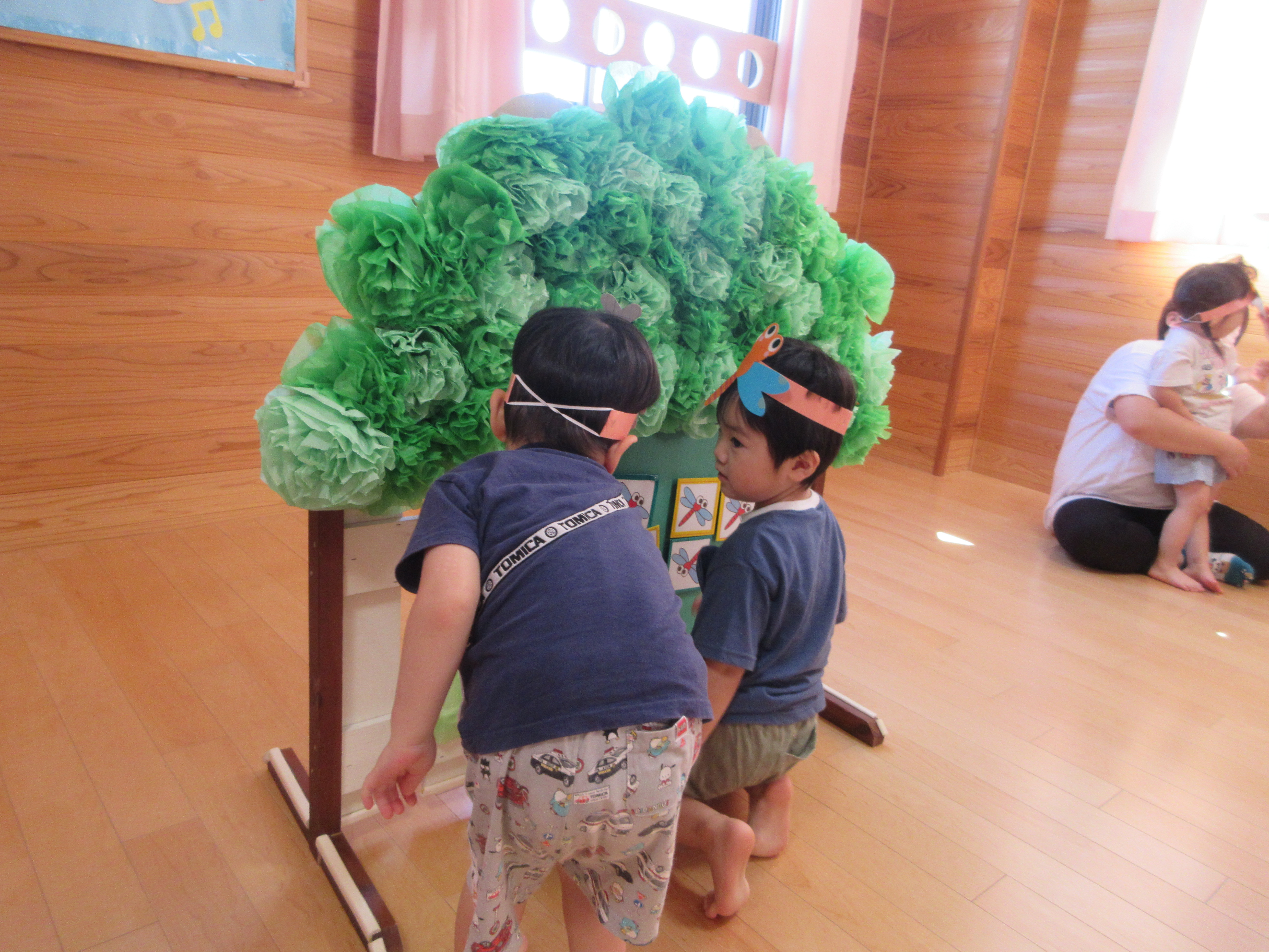 七夕会では、七夕やお星さまの歌を歌ったり、織姫や彦星が出てくるパネルシアターを