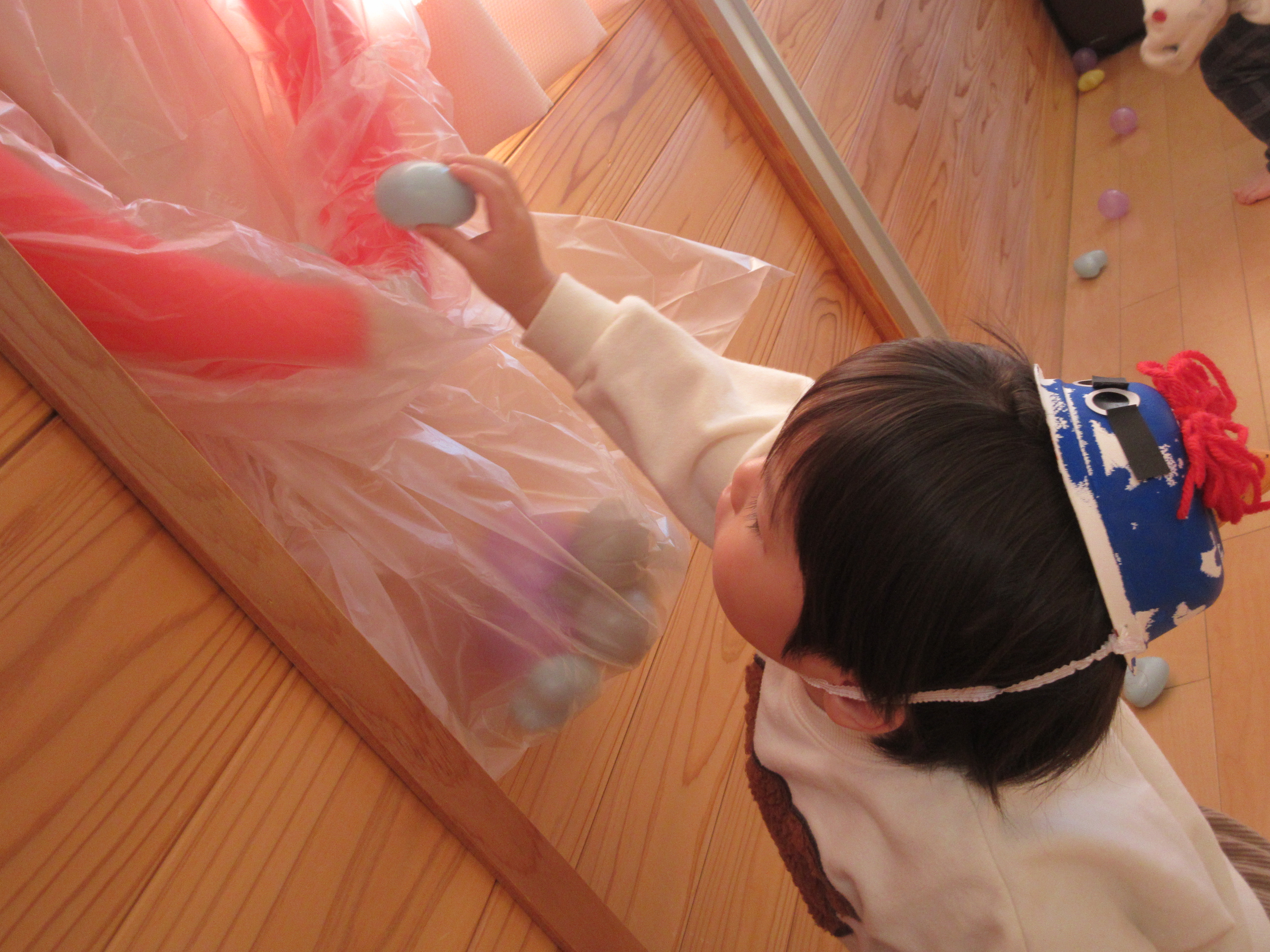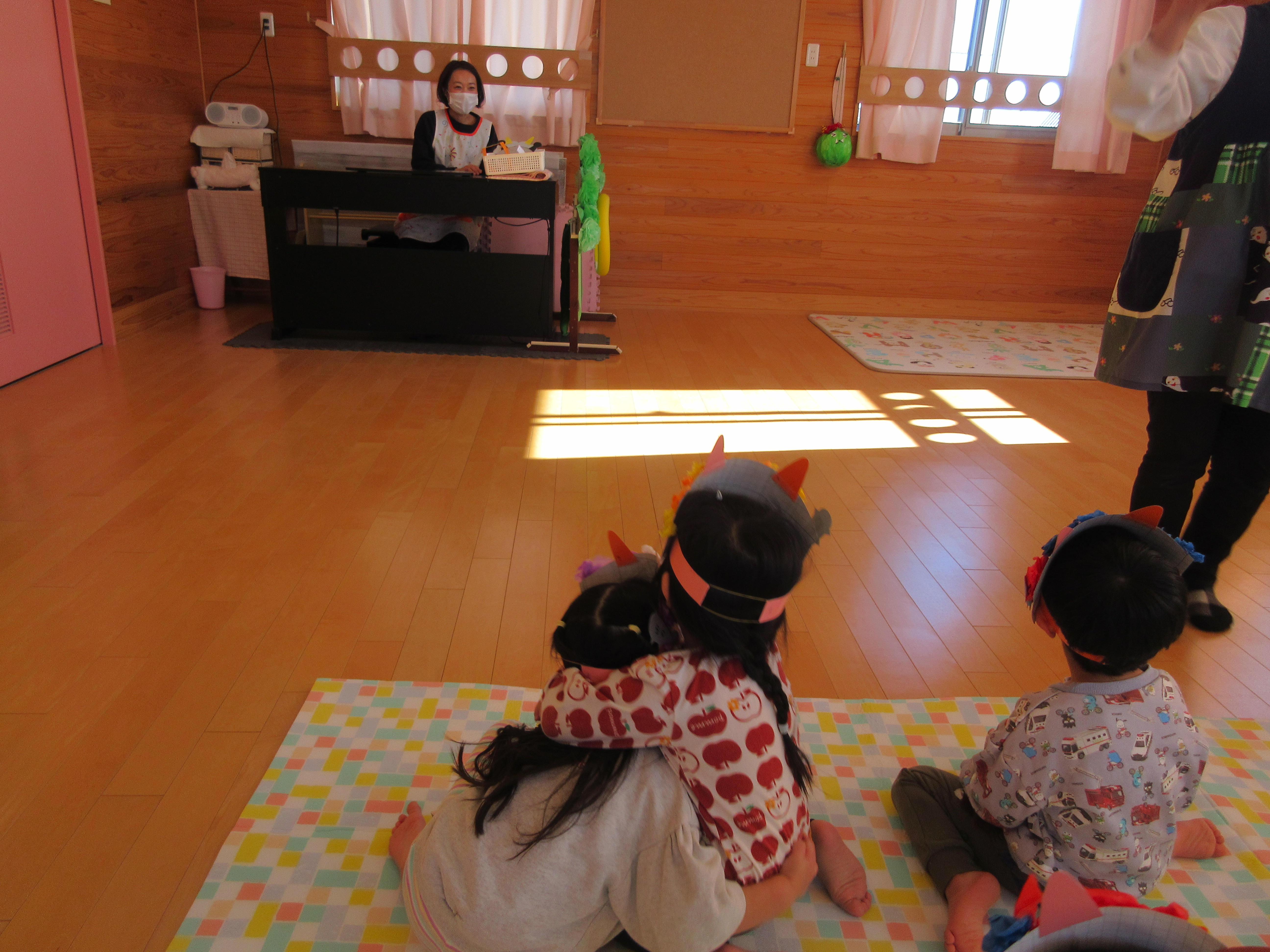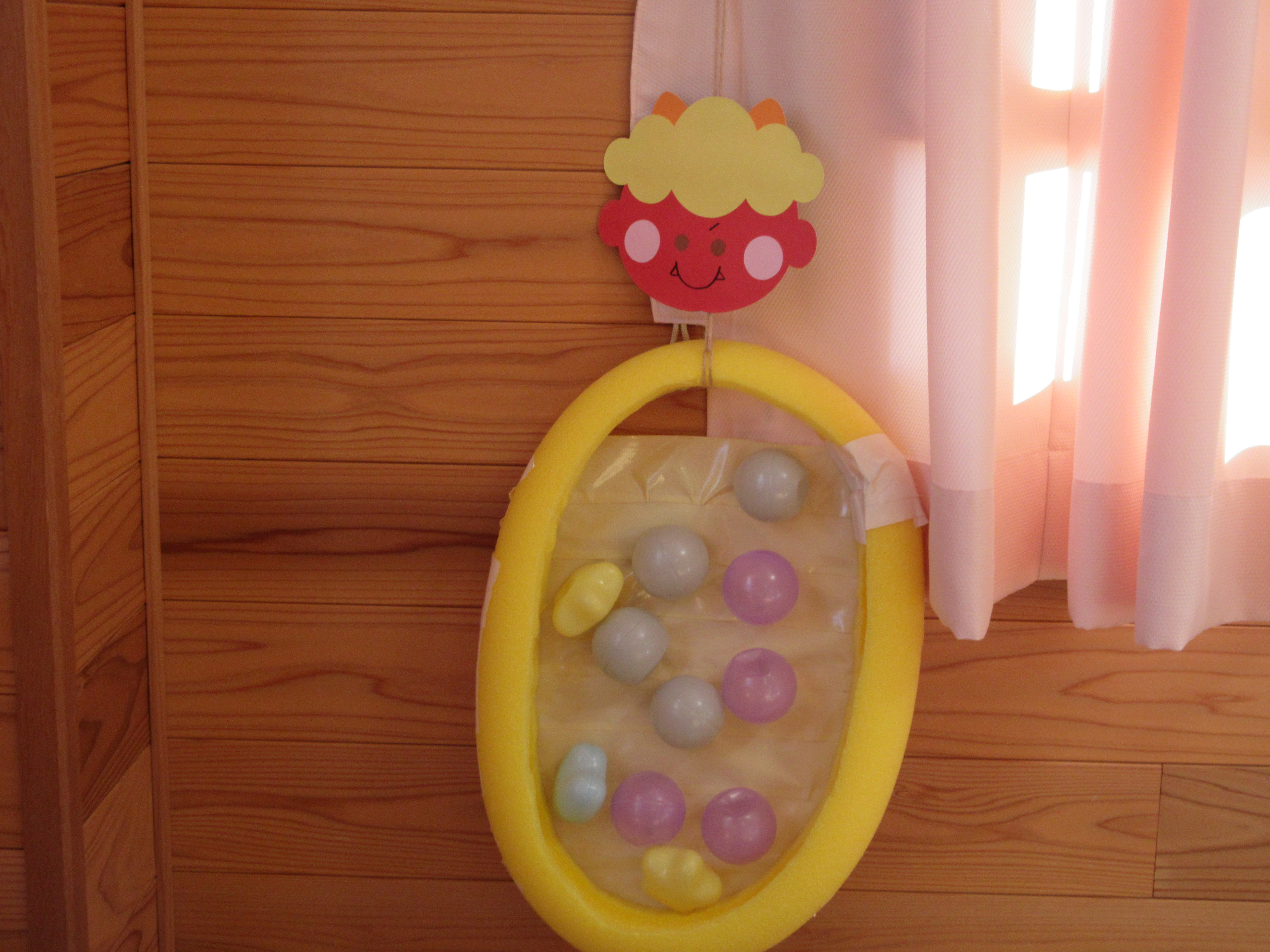 昨日の節分の豆まき会では、バイキンマンとアンパンマンが、鬼さんになって出てきてびっくりしていた様子でしたが、怒りんぼ鬼や泣き虫鬼をみんなで元気にやっつけました。